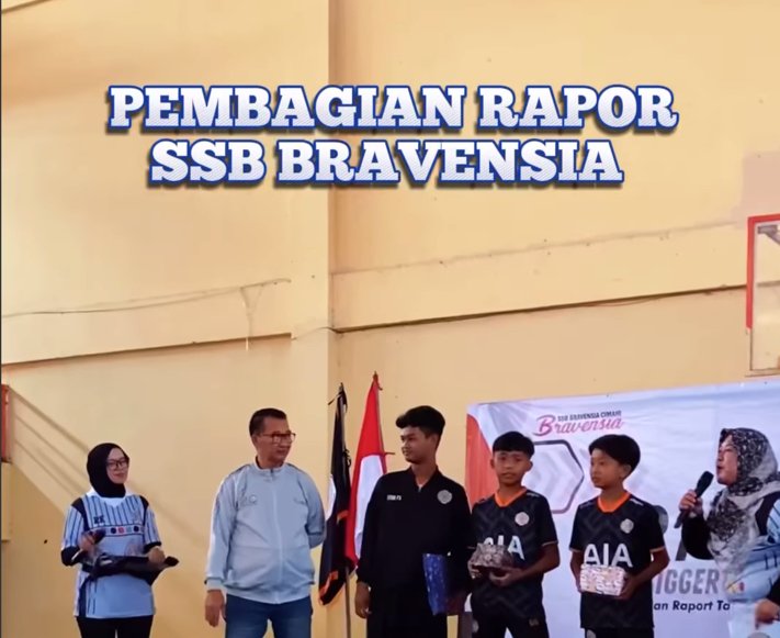 CIMAHI, iNewsBandungRaya.id – Legenda sepak bola, mantan pemain Persib Bandung, Zaenal Arif memeriahkan acara pembagian rapor bagi siswa Sekolah Sepak Bola (SSB) Bravensia Cimahi tahun